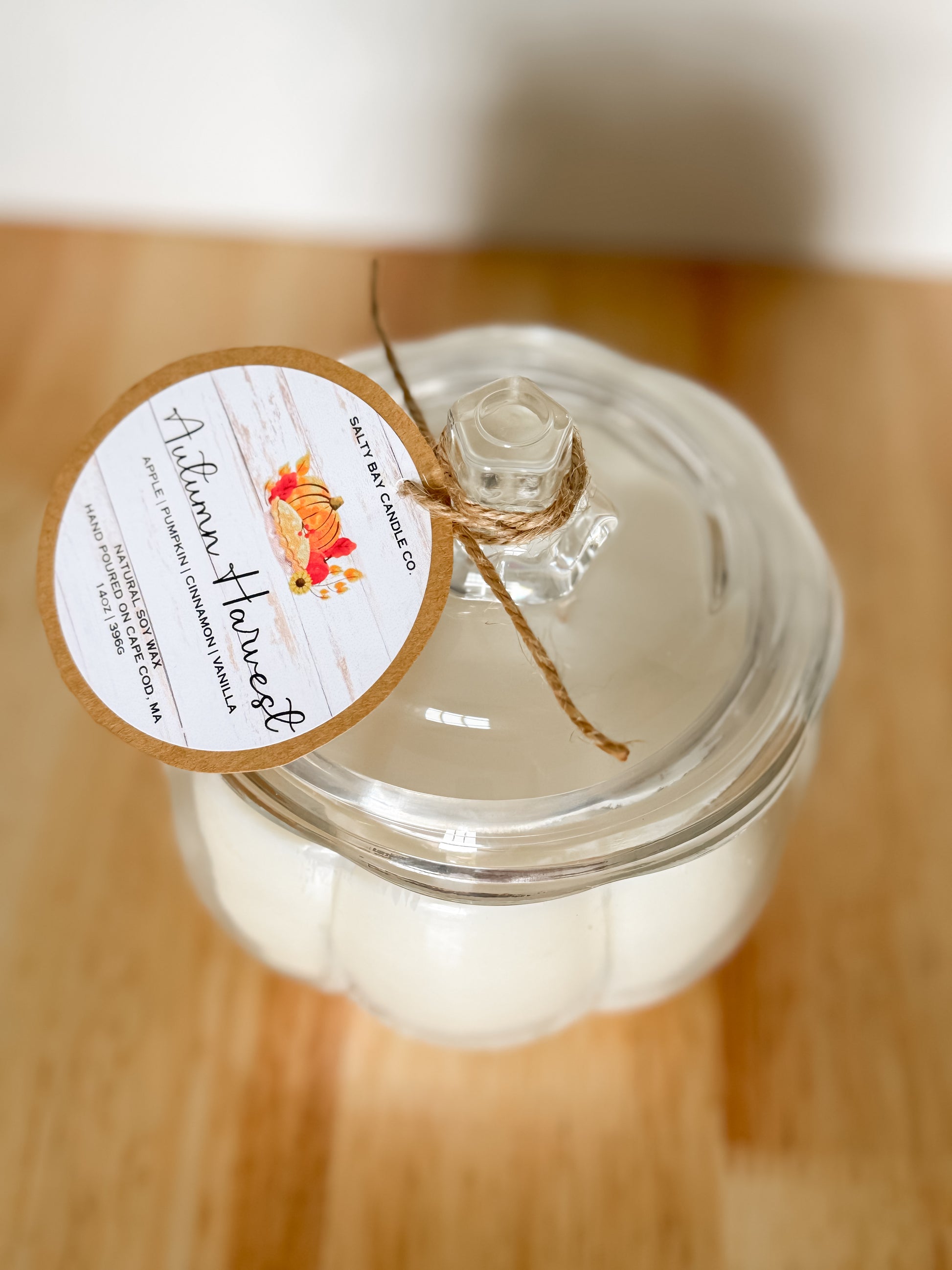 Welcome all things fall with Autumn Harvest. Top notes of crisp apple, juicy orange, and buttery notes lead to a warm heart of pumpkin, ginger, cinnamon, clove, and nutmeg. This comforting aroma settles on a creamy base of vanilla, caramel, sugar, cream, and musk, creating a perfectly balanced scent that evokes cozy autumn evenings.
